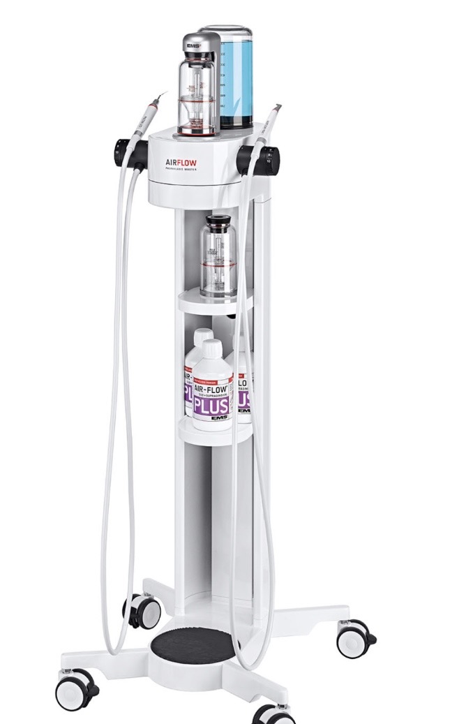 エアフロー(空気の吹付)でう蝕、歯周炎の原因であるバイオフィルム(歯の表面に付着した細菌の膜)を除去します