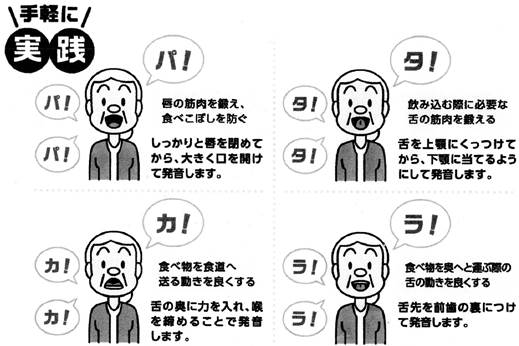 ◆口に物を入れてから飲み込むまでに大切な働きをする唇と舌、そして喉を鍛えます。