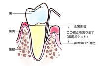 歯周ポケットってご存知ですか?この頃はCMにもこの言葉が当たり前のように登場してますからご存知の方が多いと思います。歯周病が進んで骨が溶ける結果生じる、歯の生え際の歯肉のスキマのことです。ここに検査器具を挿入して何ミリ入るか検査するのが歯周ポケット検査です。このとき同時に出血検査もします。