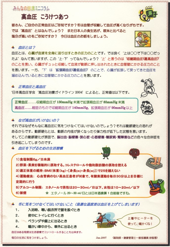 *水分補給 *タバコの話ー1 *タバコの話ー2 *高血圧 *脳卒中