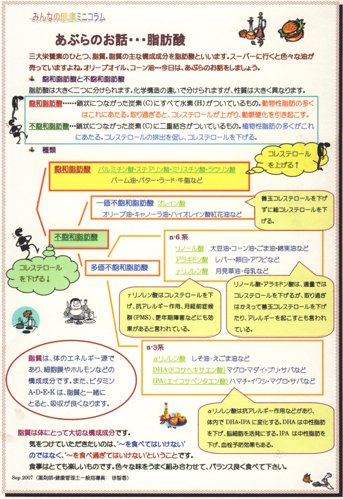 *あぶら(脂肪酸)の話 *自律神経失調症 *栄養素 *基礎代謝